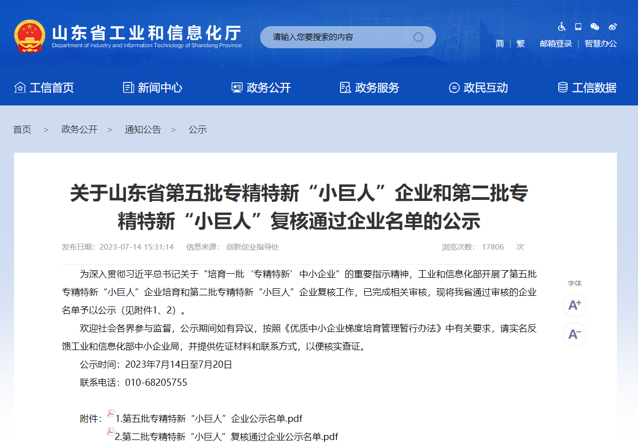 喜報!山東捷訊通信技術有限公司榮獲國家專精特新“小巨人”企業(yè)。